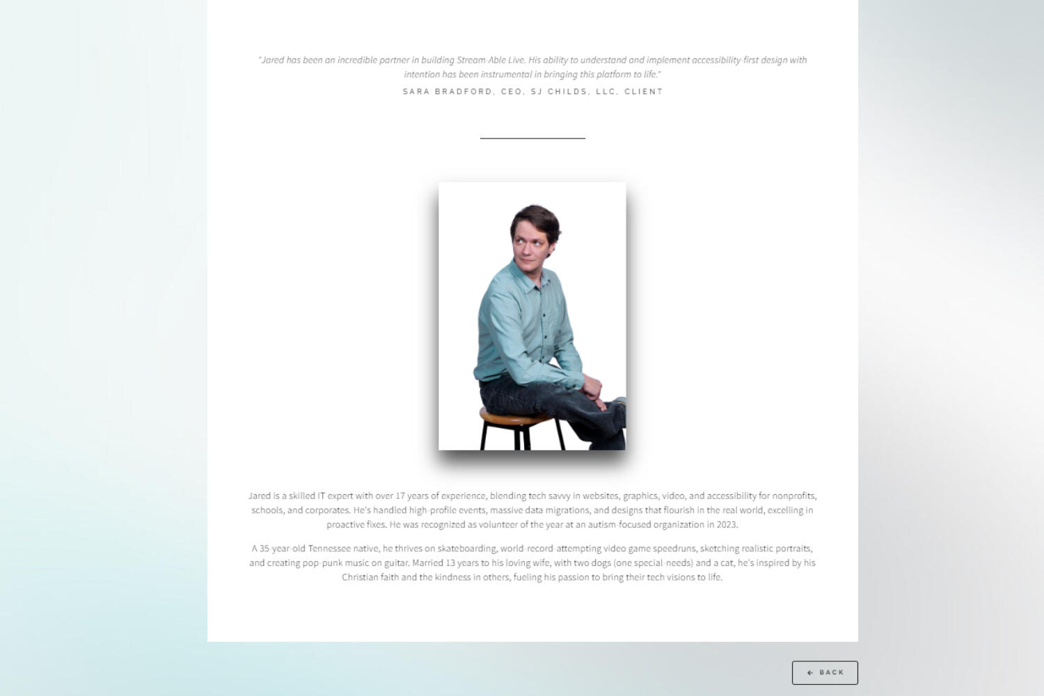 "Jared has been an incredible partner in building Stream-Able Live. His ability to understand and implement accessibility-first design with intention has been instrumental in bringing this platform to life."